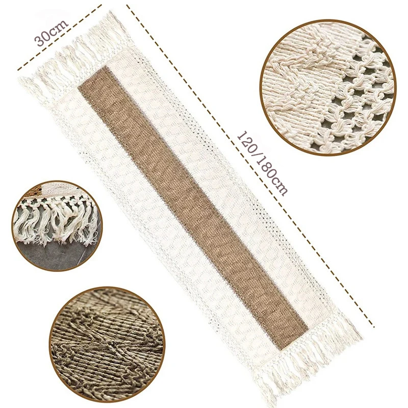 Bohemian Style Linen Table Runner Splicing Tablecloth with Tassel Dining Bedroom Decor Table Runners Wedding Table Decorations