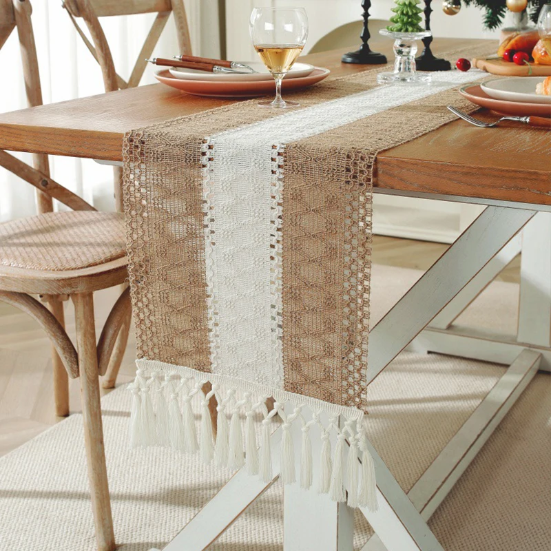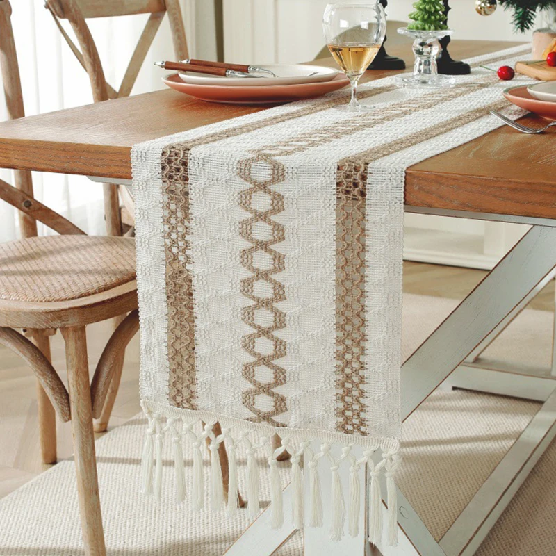 Bohemian Style Linen Table Runner with Tassels – Perfect for Weddings, Dining, and Bedroom Decor