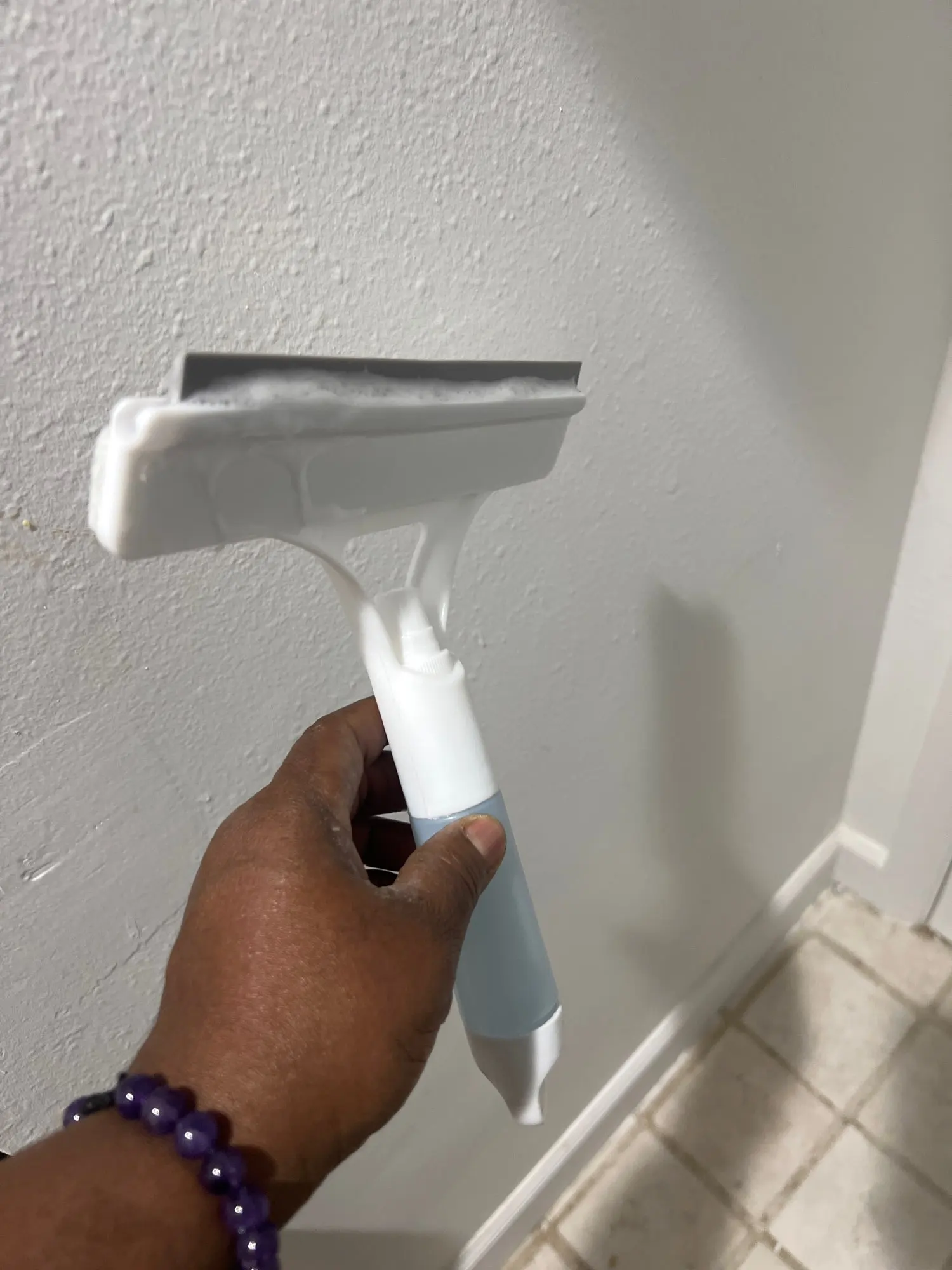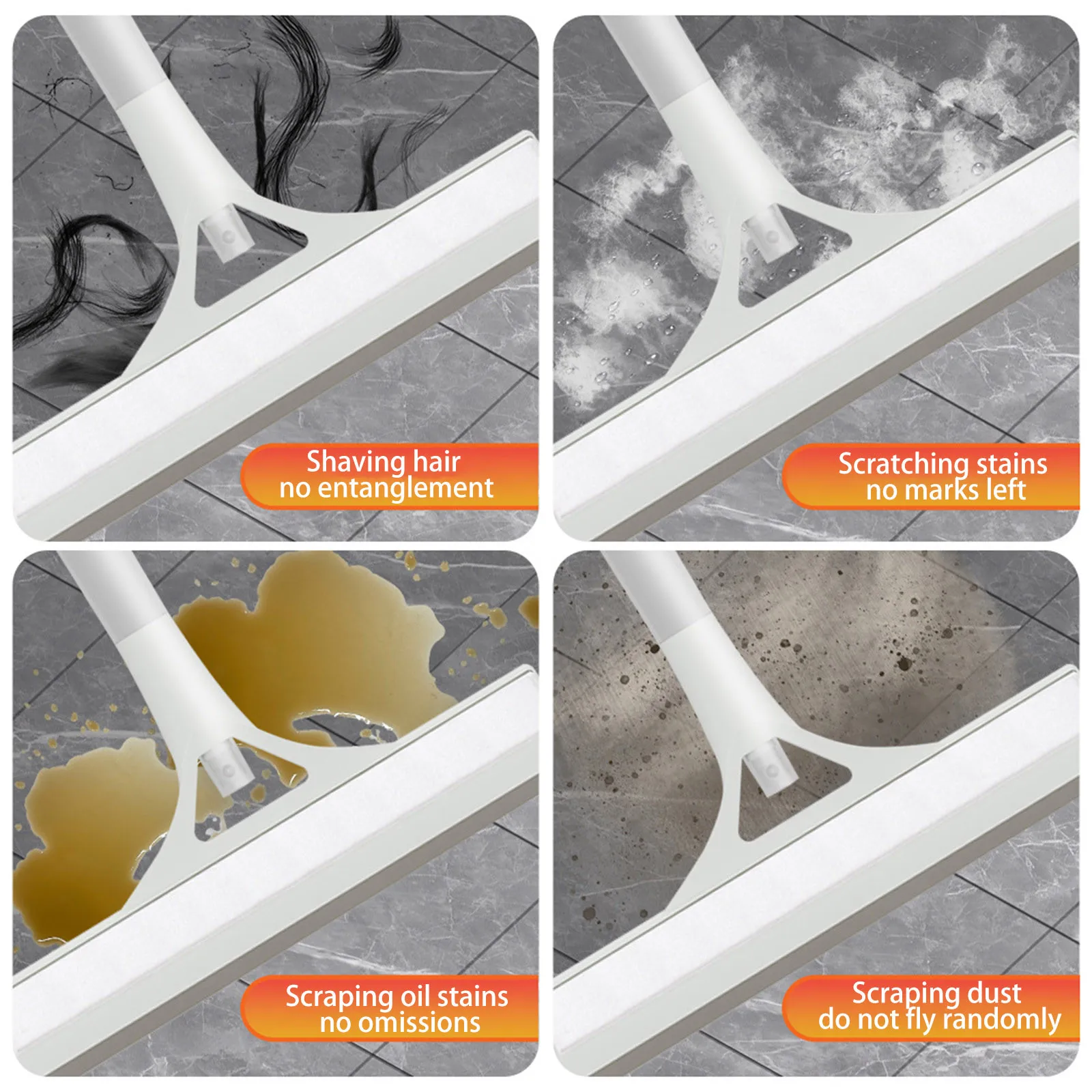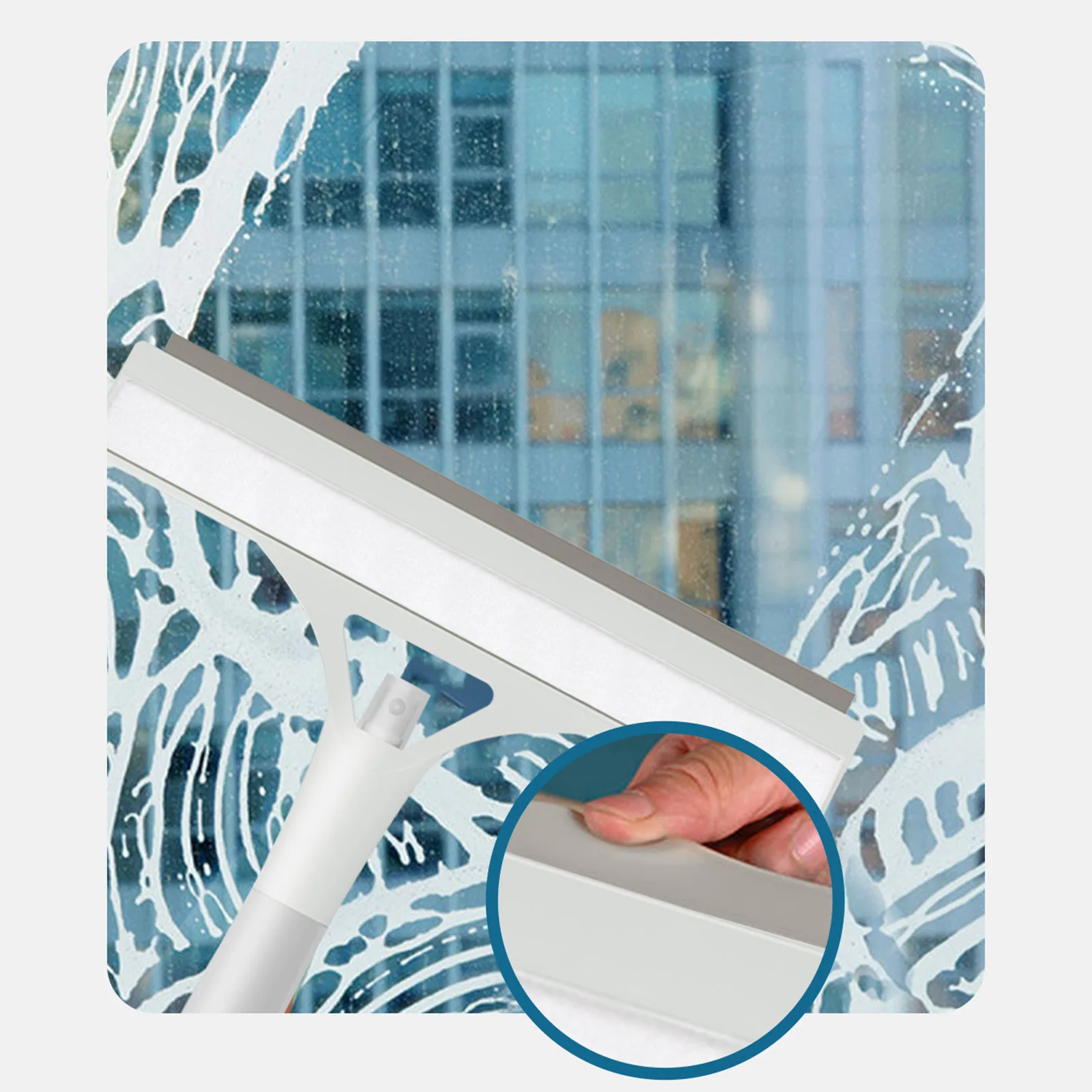 Silicone Blade: The flexible silicone blade ensures smooth, streak-free cleaning, effectively removing water, soap scum, and grime without scratching or damaging surfaces.